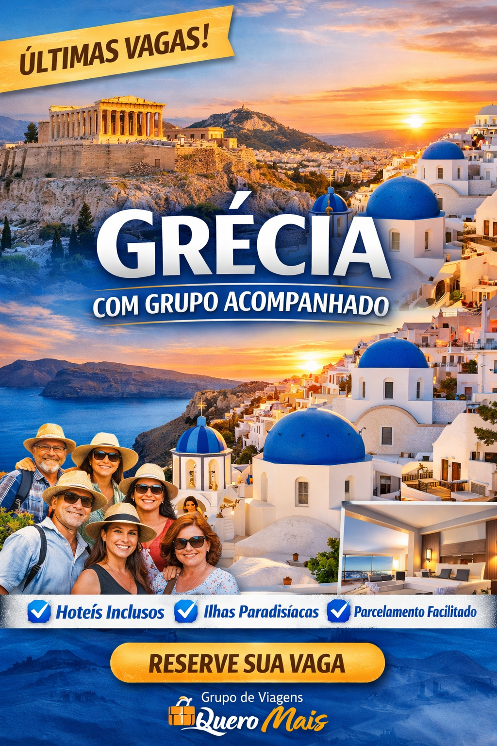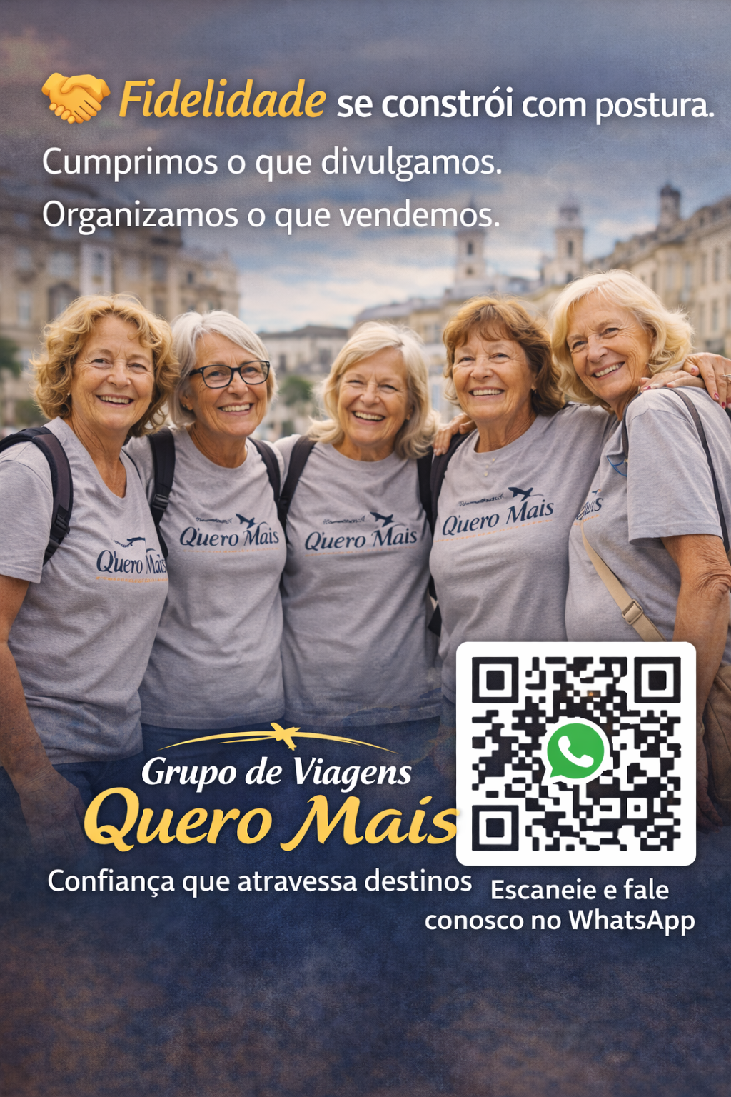 O Grupo de Viagens Quero Mais oferece experiências exclusivas de viagens internacionais em grupo, com acompanhamento desde o Brasil, roteiros cuidadosamente planejados e suporte completo em todas as etapas. Especializado em destinos como Grécia, Turquia, Itália, Peru, China e Europa, o grupo proporciona segurança, conforto e vivências culturais únicas. Com parcelamento facilitado, atendimento personalizado e organização profissional, viajar pelo mundo se torna mais acessível e tranquilo. Ideal para quem busca viagens seguras, organizadas e com companhia, especialmente para o público sênior e viajantes que valorizam planejamento e assistência contratada.