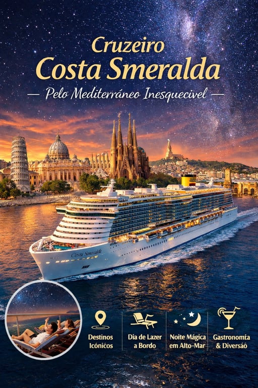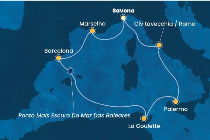 Cruzeiro pelo Mediterrâneo no Costa Smeralda com Savona, Barcelona, Marselha, Palermo e Roma. Conforto, lazer e noites mágicas.