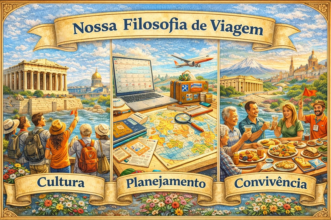A filosofia do Grupo de Viagens Quero Mais é baseada em três pilares fundamentais: cultura, planejamento e convivência.